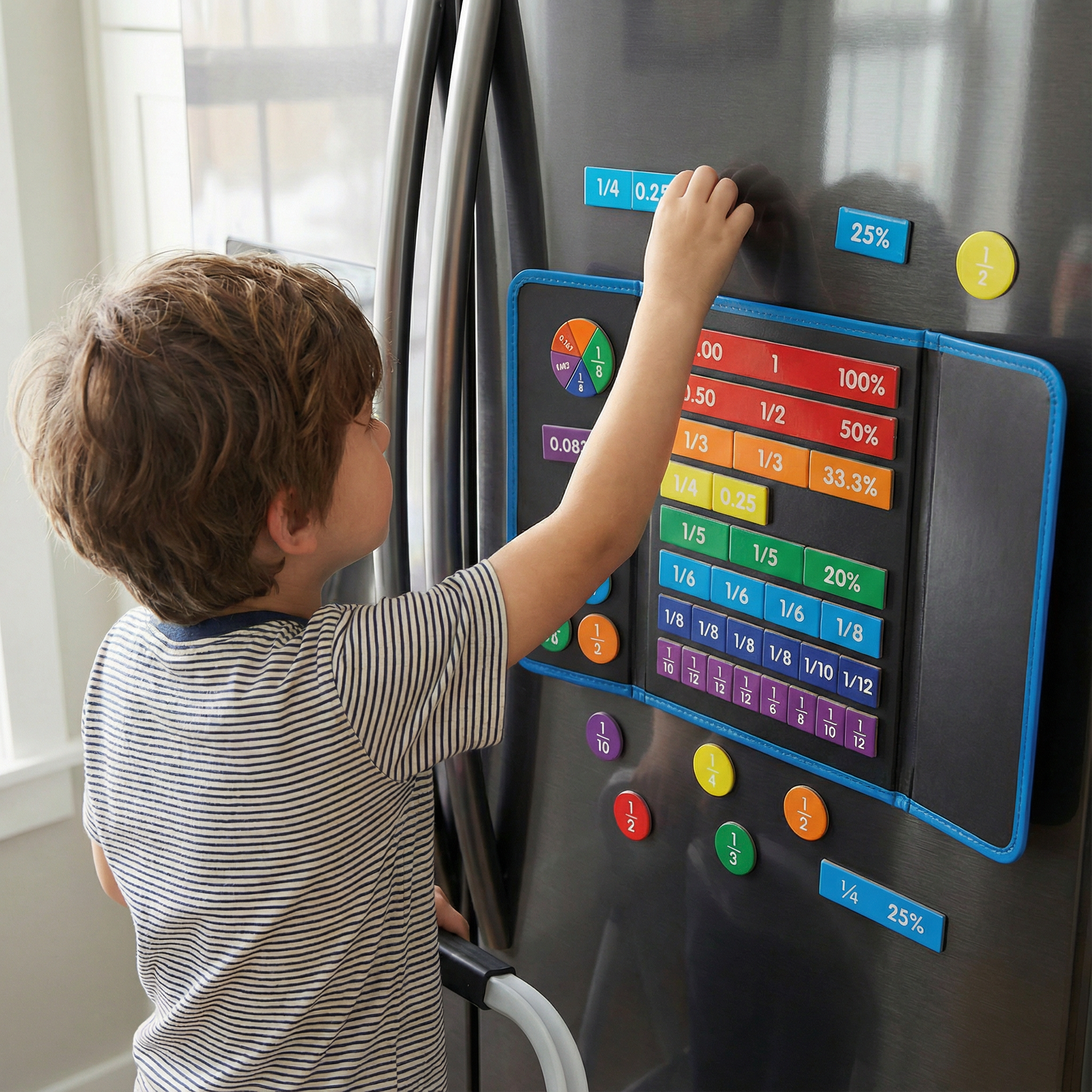 Super-strong magnets that never fall off. Meaning they DONT get lost. Stick to fridges, whiteboards, metal desks. Learning happens anywhere. Your child explores fractions on any surface, building confidence with every tile. Math made portable, engaging, and endlessly fun.
